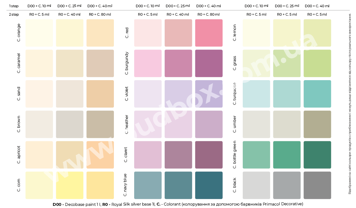 ВАРІАНТИ ТОНУВАННЯ ФАРБИ ROYAL SILK SILVER BASE